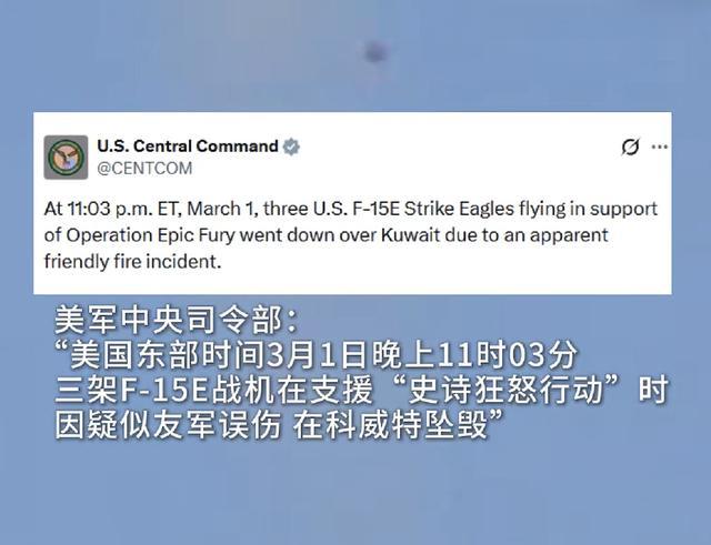 刚刚拿到两条最新音讯。第一条是,好意思军中央司令部证实,3架扶植对伊朗军事举止的F-15E战机,在科威特上空被科威特防空系统“误击”坠毁;第二条是,好意思军考究告示这云开体育次战役伤一火为——好意思军4东说念主罢休、5东说念主重伤。