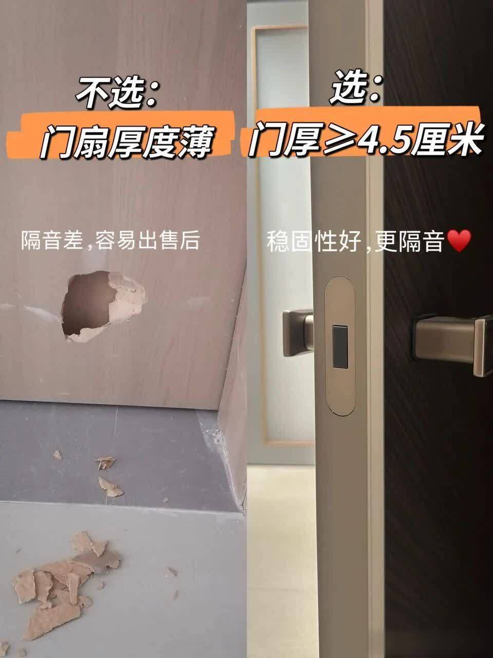 2. 不选薄门扇,选≥4.5厘米厚的门扇太薄不仅看着低价,隔音恶果差到近邻话语齐能听见,还容易出售后问题;门扇厚度≥4.5厘米,领悟性拉满,隔音恶果平直翻倍,住起来更鼎沸。