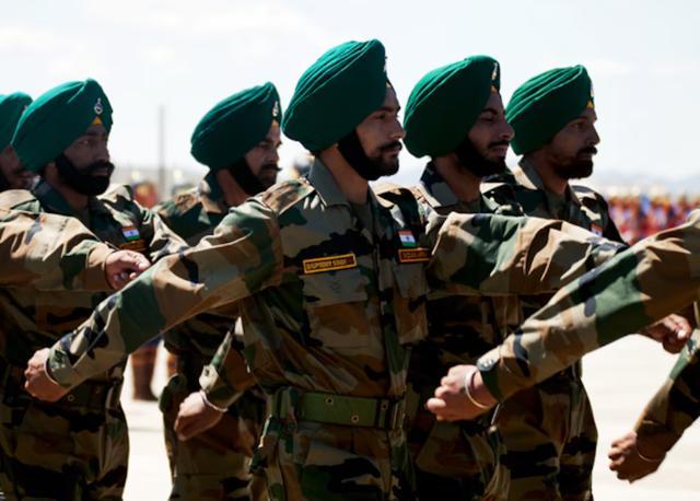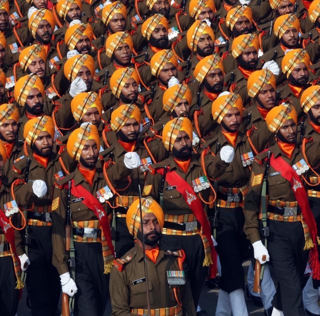 这些头上裹布的士兵是印度的锡克教徒,在印度东说念主里属于能打的那一批。