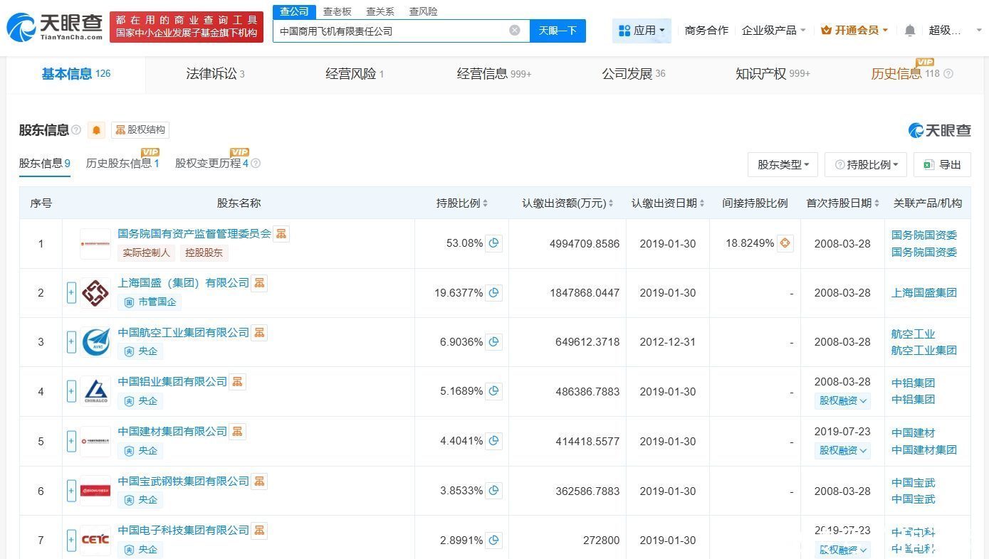 该公司建设于2008年3月,法定代表东说念主为贺东风,狡计规模含民用飞机及联系产物联想、研制、分娩、改装、试飞、销售、维修、就业、时间开垦和筹议就业等。鞭策信息深远,该公司由国务院国有钞票监督处分委员会、上海国盛(集团)有限公司、中国航空工业集团有限公司等共同握股。